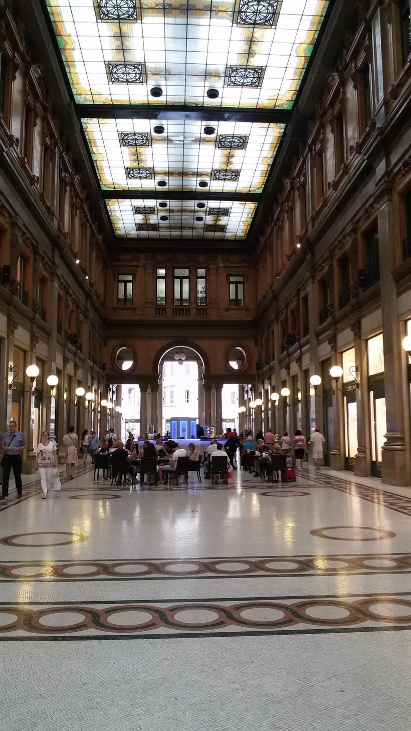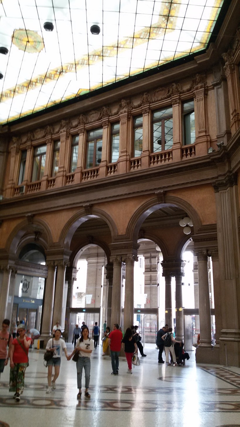 Витражи на потолках впечатляют, как и мозаичные полы. Интересно пройти по всей галерее, рассмотреть арочные своды, многочисленные колонны, другие декоративные элементы.