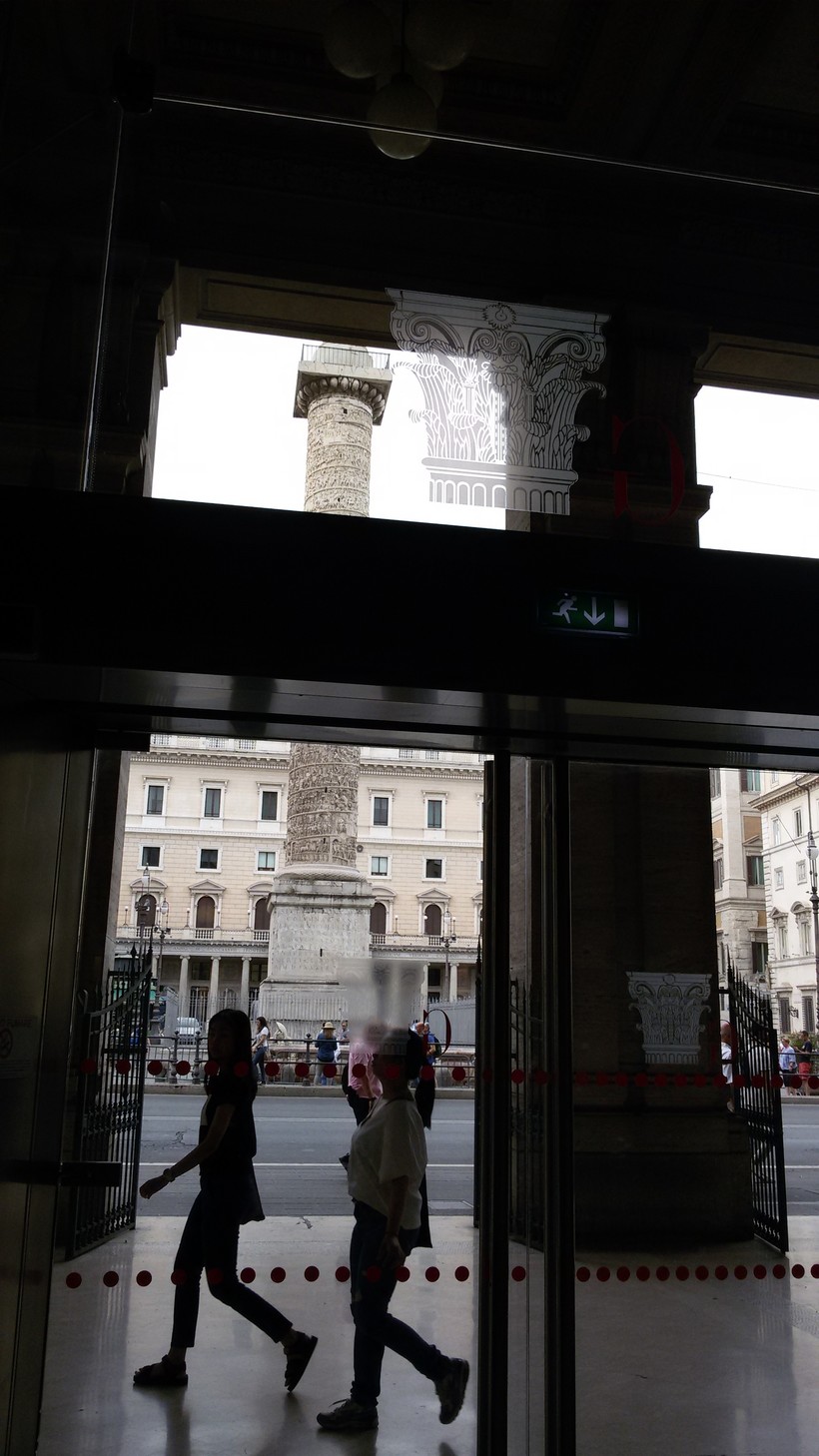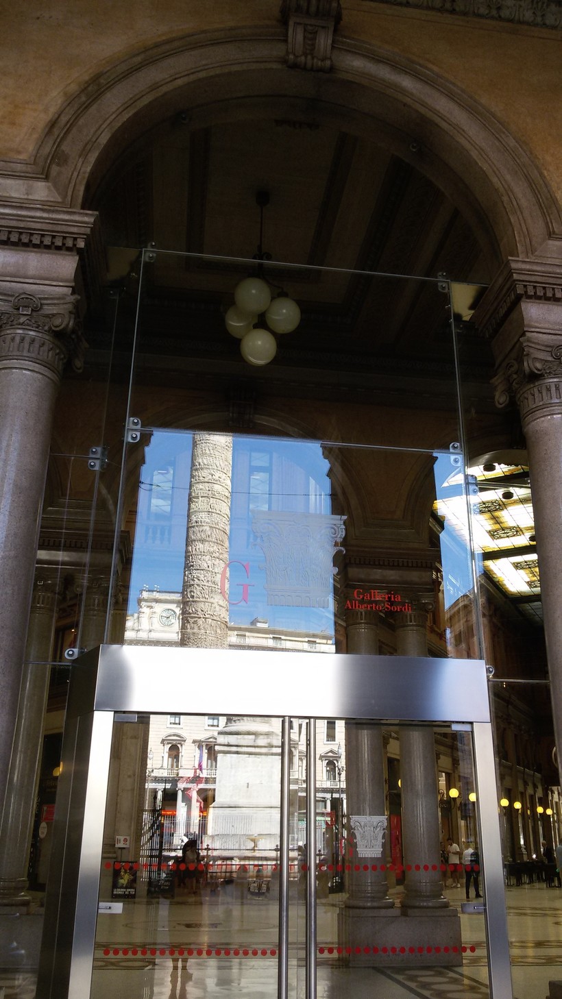 Когда подходишь к дверям галереи, колонна Марка Аврелия отражается в начищенных до блеска стеклах. Мне этот эффект понравился, сделала фото.
