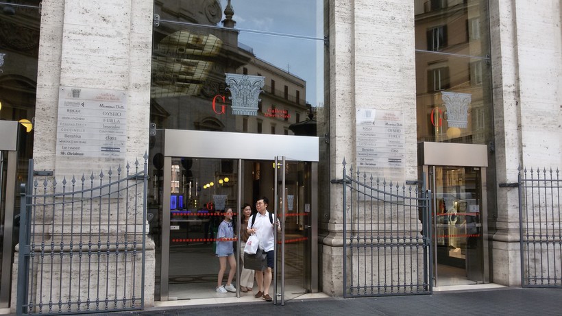 Галерея Альберто Сорди находится на популярной торговой улице Via del Corso, здание поражает грандиозными размерами и архитектурой. Туристы с интересом рассматривают величественные колонны, лепнину на фасаде и витражные потолки в широких переходах галереи. Эта галерея такая просторная! После прогулки по римским улицам с узкими тротуарами и толпами туристов здесь просто отдыхаешь.