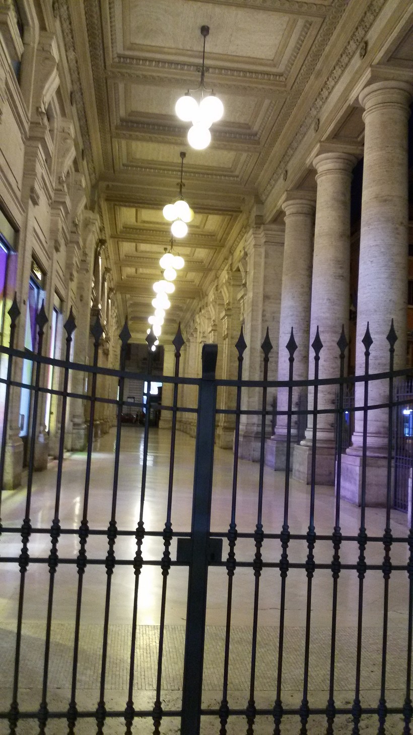 Очень красивый широкий переход соединяет галерею и улицу Via del Corso, с потолками, разбитыми на прямоугольники, и нарядными люстрами. Когда идешь по нему, чувствуешь какую-то торжественность.