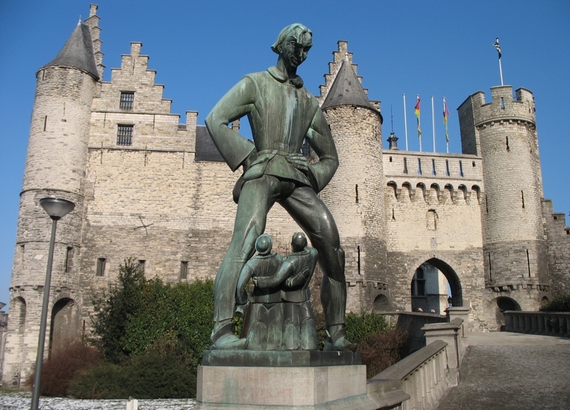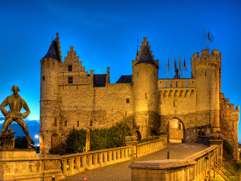 Замок стен я увидела во время вечерней прогулки по Антверпену. Меня он поразил тем, что внешне напоминал какой-то замок Графа Дракулы, или замок с приведениями - вообщем что-то мрачное сказочное. Во время прогулки он был закрыт, поэтому я пришла к нему на следующий день.