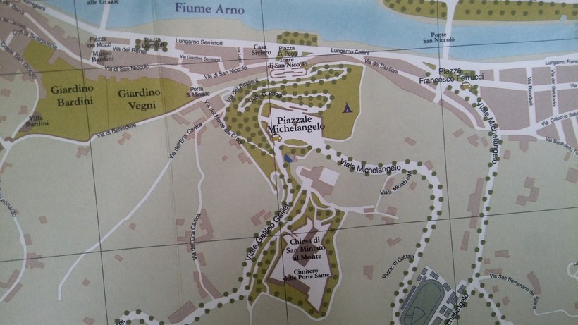 Например, мы с детьми добирались на машине из города Импрунета, который затерялся среди Тосканских холмов, и подъезжали к Пьяццале Микеланджело через Институт Галилео Галилея по улице Vialle Galileo. Дорога там кружит и петляет, а потом резко вывозит прямо к стоянке автобусов и машин на смотровую площадку. Можно приехать и с другой стороны – тогда надо двигаться по Vialle Michelangelo.