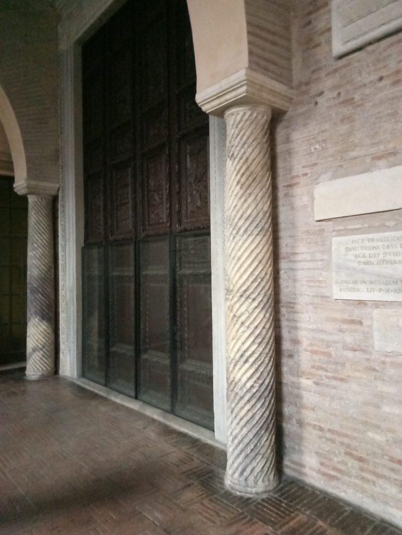 - деревянные кипарисовые двери V века. Оригинальные двери, украшающие главный вход в здание – ровесники собору. Двери заключаются в себе 28 панно на тему библейских историй. Говорят, деталей раньше было больше, некоторые были утрачены во время реставрации в XIX веке, сохранившиеся же рельефы слегка перепутаны местами.