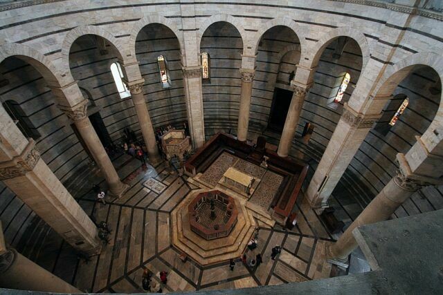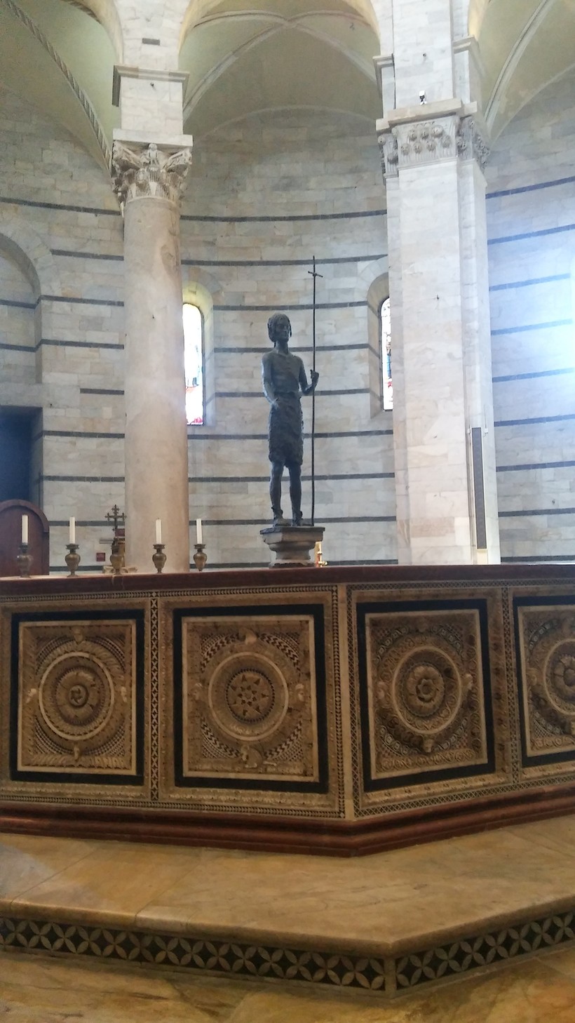 Само здание получилось высотой почти с Пизанскую башню (его высота 55 метров), а скульптура Иоанна Крестителя, установленная на куполе, делает Баптистерий даже выше Башни!