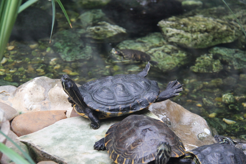 В павильоне с рептилиями встретились с черепашкой, занимающейся йогой.