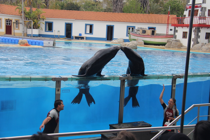 Напоследок мы посмотрели замечательное шоу с дельфинами и морскими львами. В сравнении с аналогичными представлениями в других зоопарках (MundoMar в Бенидорме, Rio Safari в Эльче, океанариум в Валенсии) это показалось наиболее интересным. Много хороших и разнообразных трюков. И оно как-то душевнее что ли.