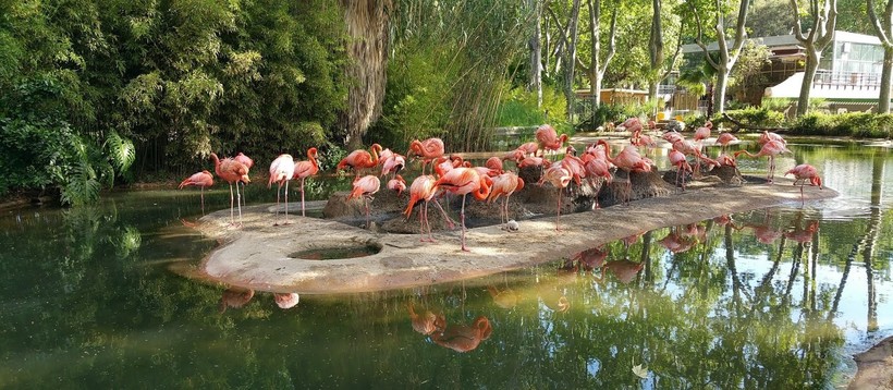 Мне понравились фламинго, их количество. Когда они гуляют по зеленой травке, такие важные, розовенькие, плотненькие, так и хочется их потискать. Как будто на лужайках разбросали огромный зефир. Подойти к фламинго вплотную нельзя, однако там можно их увидеть достаточно близко.