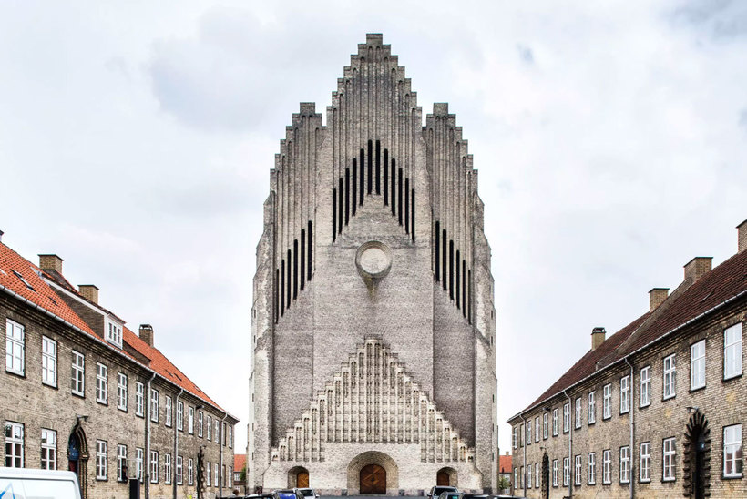 Фасад выполнен в стиле экспрессионизма, но с элементами готики. Название церкви связано с именем Николая Фредерика Северина Грундтвига. Этот человек - датский епископ, политик, а также поэт. Его теории и идеи собраны в конституции Дании, и соответствуют нынешнему мироощущению датчан.