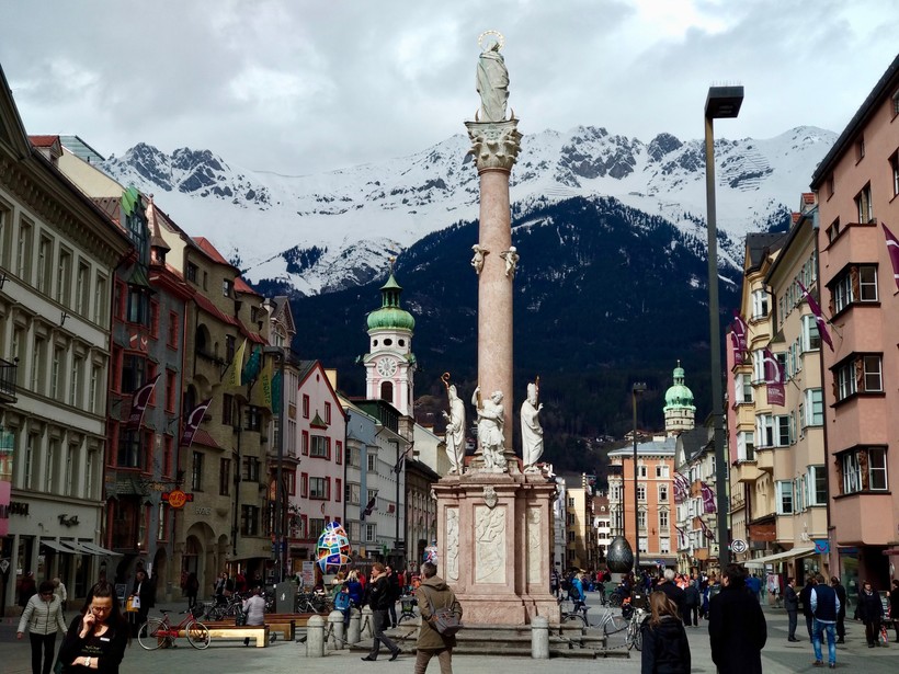 Если вы гуляете по старому Инсбруку, колонна святой Анны обязательно должна быть в Вашей программе. Я советую заглянуть сюда и увидеть знаковый монумент, разглядеть все детали, отдохнуть и отправиться на прогулку дальше – благо, мест для прогулок в Инсбруке полно.