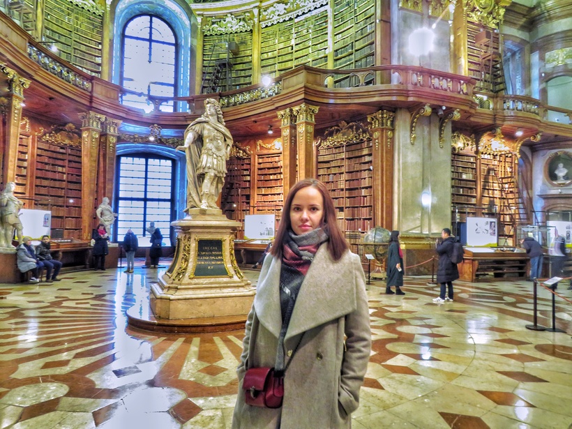 Пробыв в Вене несколько дней и посетив самые популярные достопримечательности, проникнувшись великолепием императорских дворцов, садов и парков, я находилась в поисках чего-то менее очевидного. Хотелось еще роскошных интерьеров, исторического бэкграунда и, конечно, красивых фотографий. Расследование (надо признать, недолгое) привело меня по адресу Парадного зала австрийской национальной библиотеки (Österreichische Nationalbibliothek, ÖNB):
