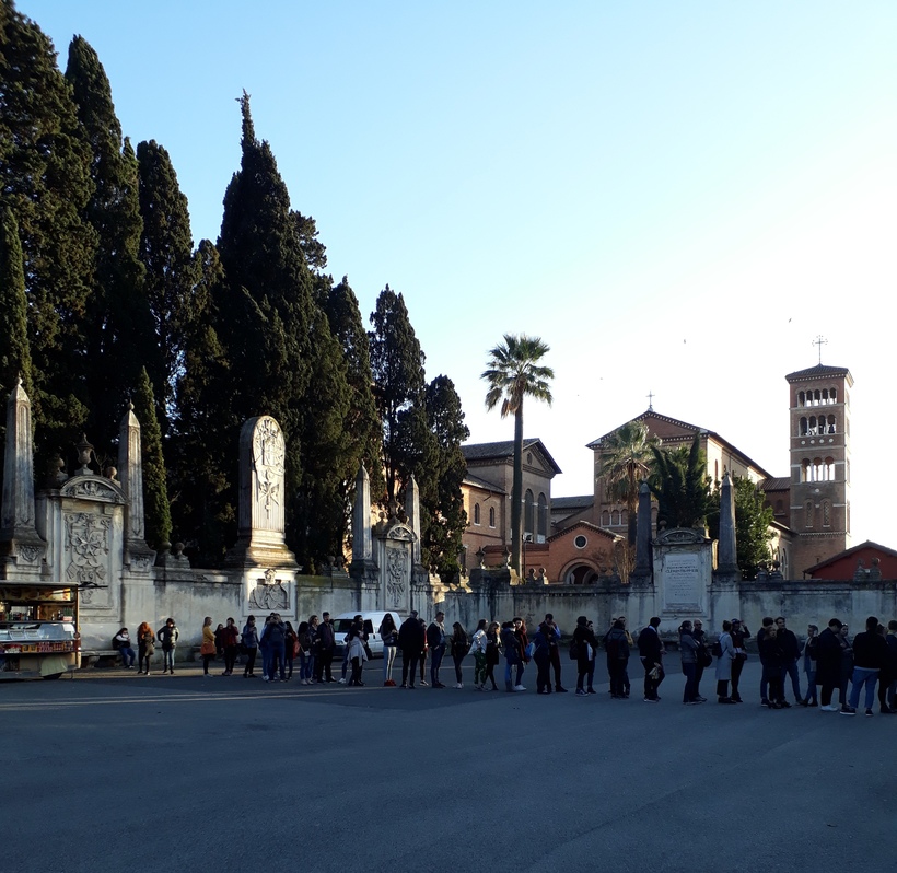 - посмотреть в замочную скважину и увидеть сразу три государства – Италию, Ватикан и Мальтийский Орден. Да, Мальтийский Орден – это тоже государство – крохотное, религиозное и закрытое, но те, кто хочет положить себе в копилку еще одну страну и поставить галочку, вполне может этим воспользоваться. Хотя для меня выстоять очередь, чтоб просто посмотреть в скважину развлечение так себе, поэтому, сфотографировав толпу, я прошла мимо.