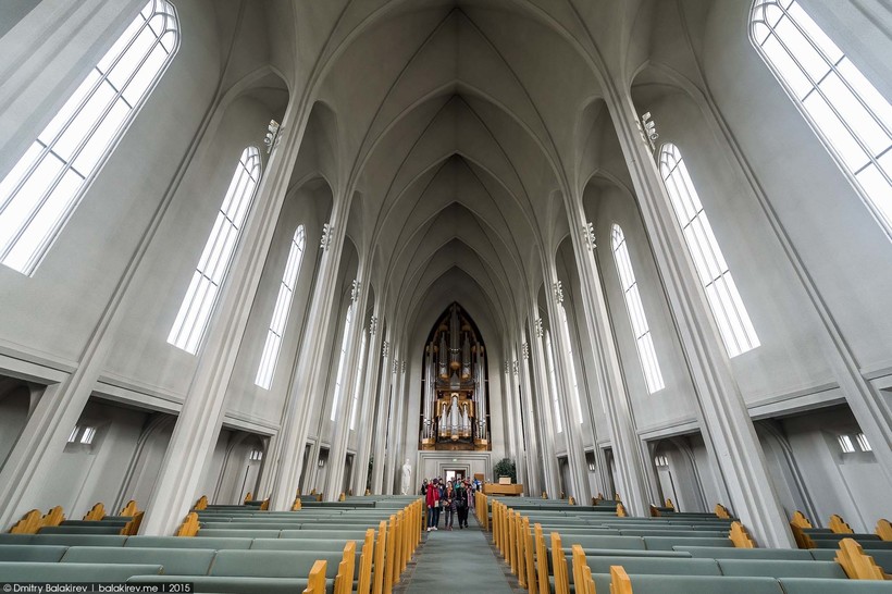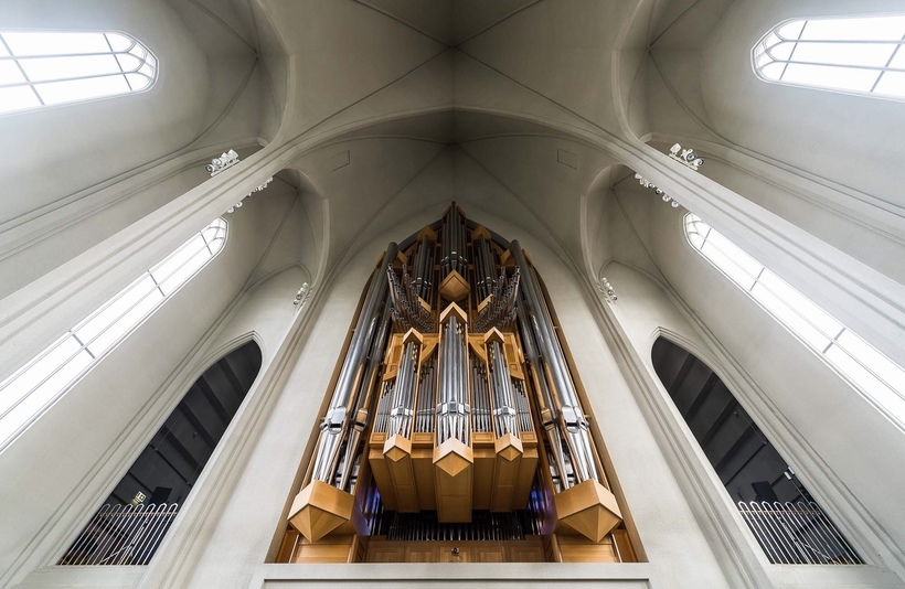 Конечно же в храме находится орган - самый большой в Исландии. К сожалению, мне не удалось побывать на концерте и услышать его в действии, но я уверена, что благодаря такому большому пространству, акустика должна быть очень хороша.