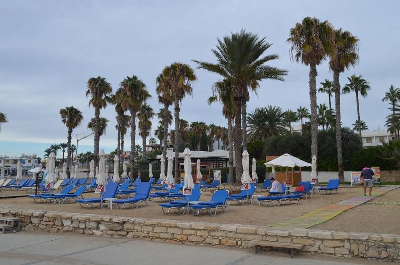 Как попасть. Доехать до Пафоса значит сделать полдела, в прямом смысле. Автовокзал Karavella Station, на который прибывают междугородные автобусы, находится вдалеке от побережья, и прибывшие на него могут сколько угодно озираться в вокруг в поисках моря. Чтобы попасть на пляж, придётся либо идти на юг примерно полчаса, либо ехать 10 минут местными автобусами за 1,5 евро. Подходит любой транспорт до остановки Kato Paphos, например, маршруты 610 и 618. Остановка находится рядом с пляжем.