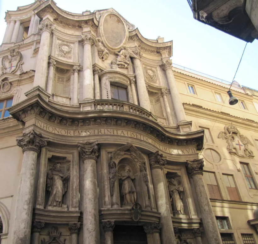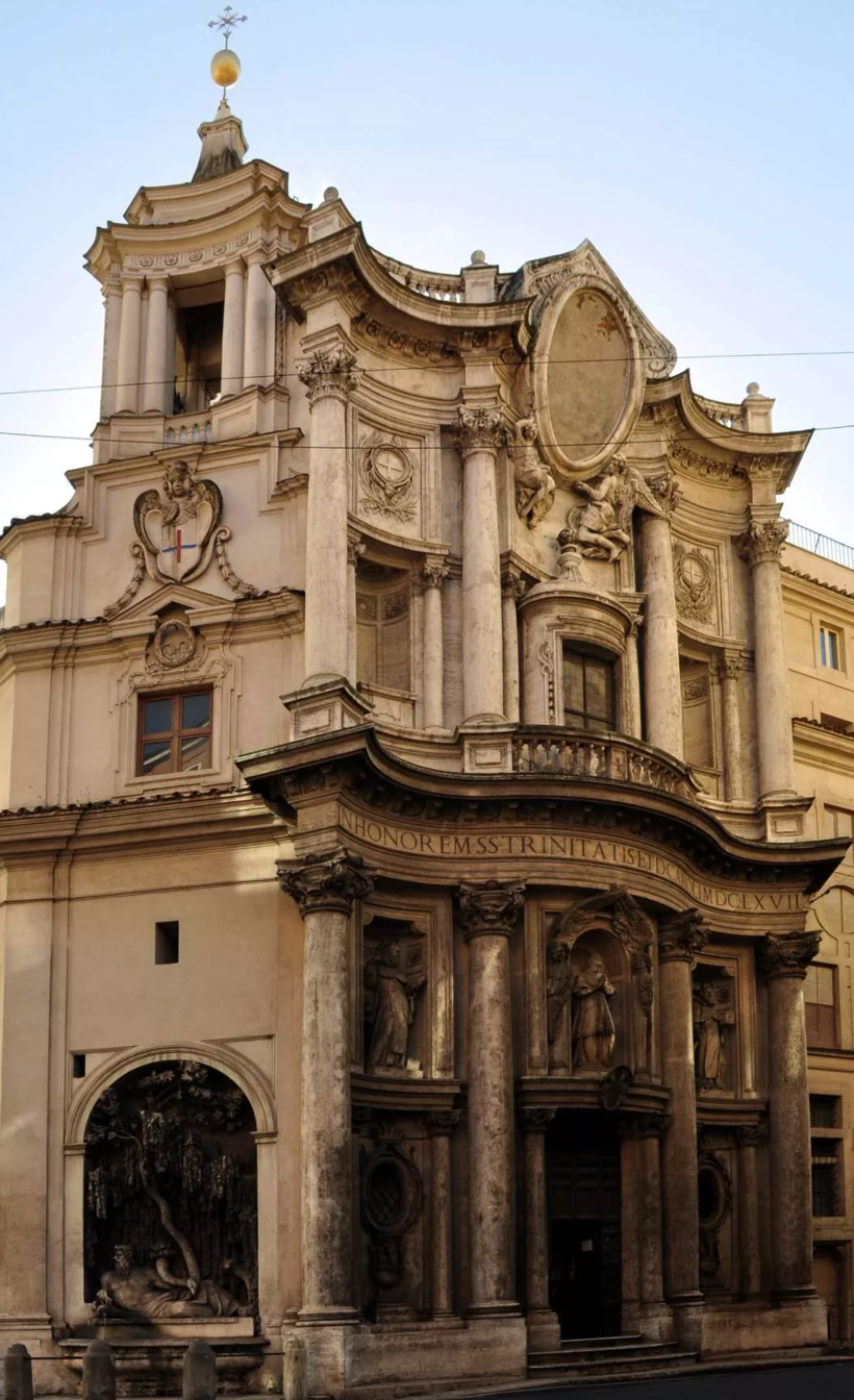 На перекрестке улиц Via del Quirinale и Via delle Quattro Fontane находится церковь Сан Карло алле Кватро Фонтане. Её в буквальном смысле впихнули на этот очень неудобный клочок земли. Но как мастерски это сделали!!!! Изменили геометрию фасада, чтобы лаконично вписать эту церковь в окружающий ландшафт.