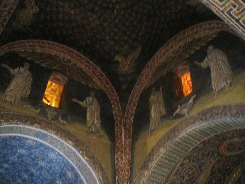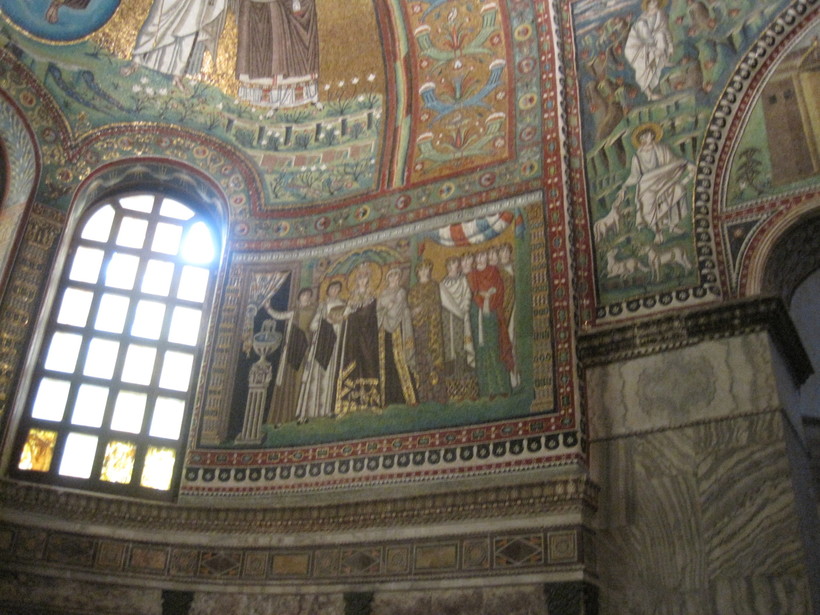 Меня поразило, что картины в идеальном состоянии. За тысячу триста лет, мозаика почти не притерпелся изменений, не выпали отдельные кусочки и цвета не померкли. Для меня это было потрясение. Я рассматривала стены и купола и не могла поверить, что базилике столько много лет. Картины из маленьких кусочков подобраны настолько тонко, что не возможно поверить, что это не живопись. Атмосфера здесь царила необыкновенная, восторг очень слабое слово, чтобы описать состояние посетителей, в том числе и мое.