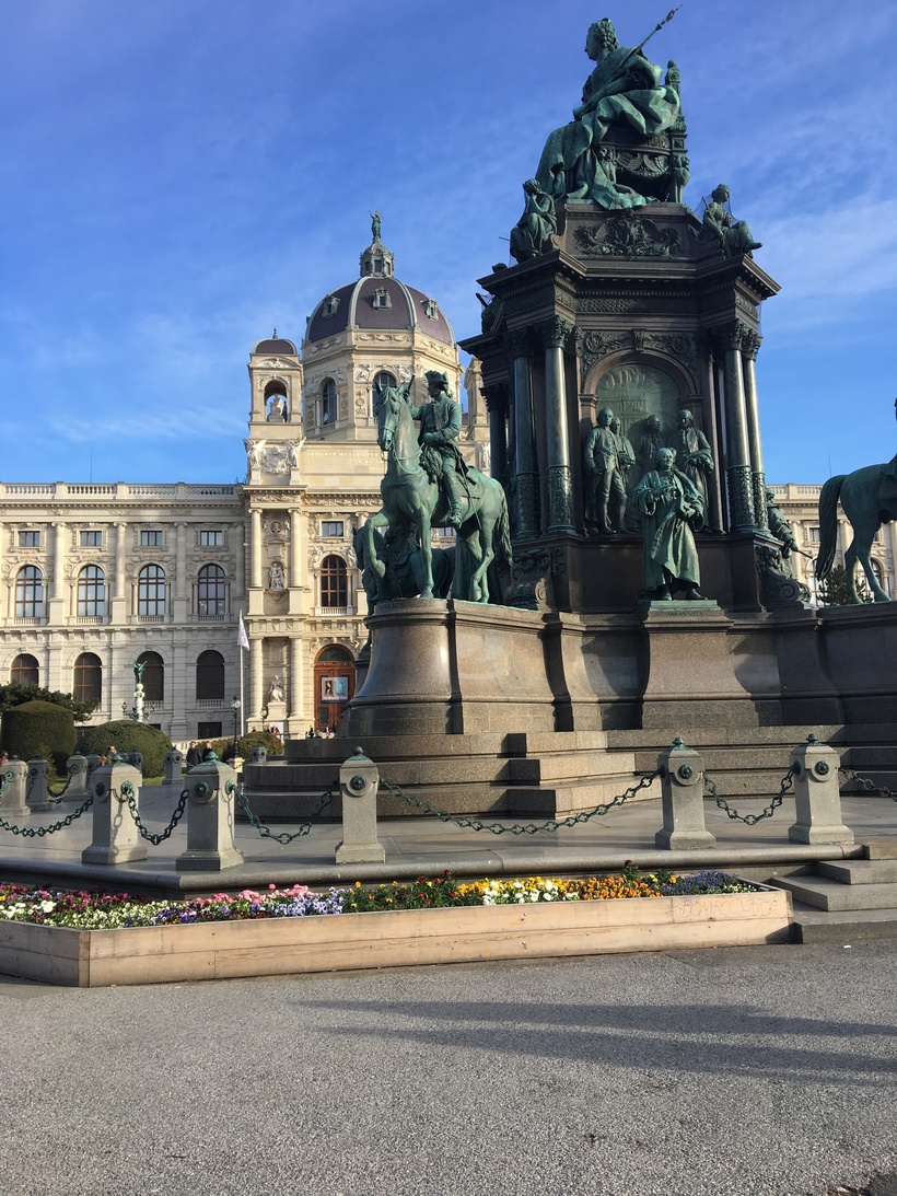 Поэтому свой путь по Рингу я начала повернув от Оперы направо, к главной достопримечательности Вены - Хофбургу, дворцовому ансамблю, занимающую значительную часть внутреннего города Вены и выходящему на Ринг. Пройдя парк за которым виднелся частично дворец и павильон я дошла до площади. С Ринга в Хофбург ведёт парадный вход, огромные арки приглашают войти в дворцовые постройки. Прямо напротив на другой стороне Ринга площадь Марии-Терезии с огромным памятником посредине. На памятник смотрят с двух сторон два огромных музея Вены: музей истории искусств и музей естествознания.