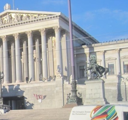 В некоторых частях Ринга посажены аллеи и я с удовольствием прошлась по ним. Дальше я немного повернула по Рингу и увидела здание парламента на внешней стороне. Было много туристов на ступеньках.