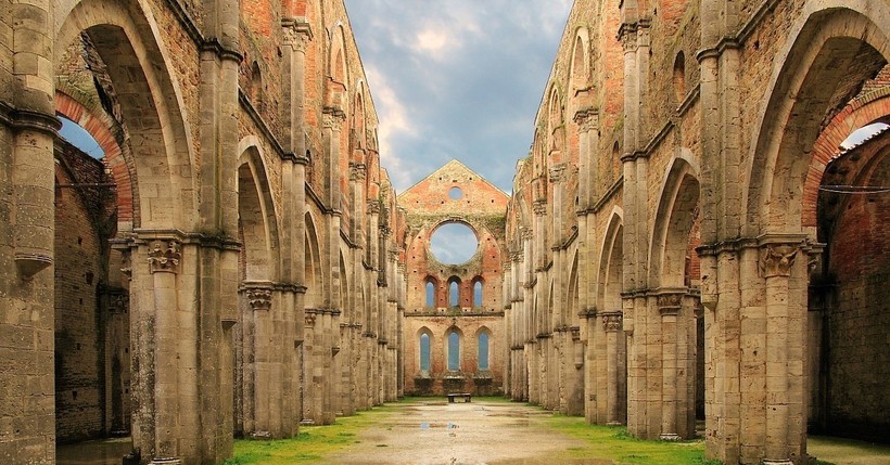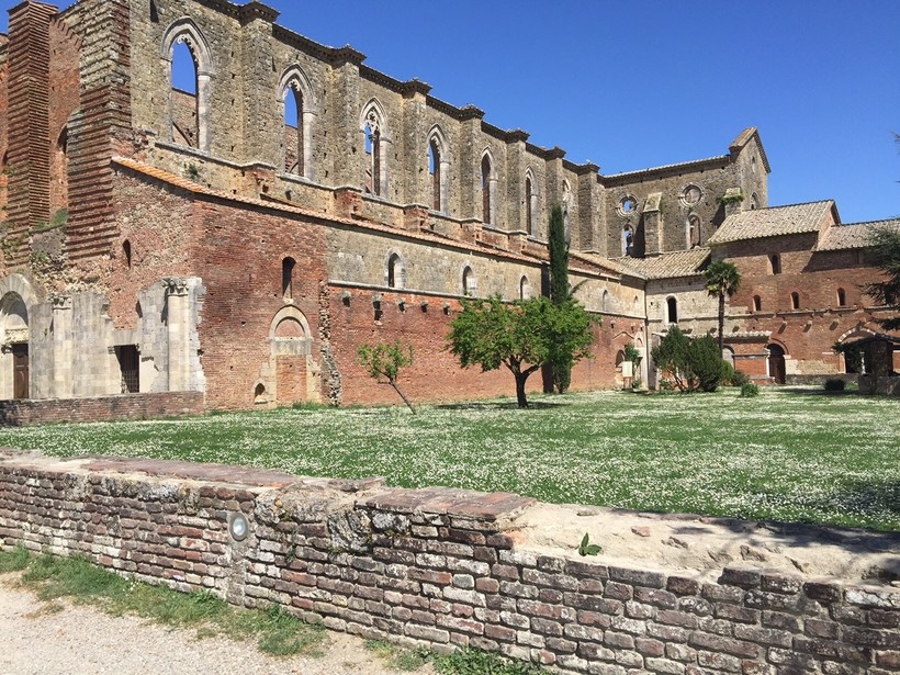 Это необычное место я обнаружил, изучая окрестности тосканского города Сиены. Аббатство Сан-Гальгано (по-итальянски Abbazia di San Galgano) находится в малонаселенной местности в 30 километрах от Сиены среди полей, зеленых холмов и кипарисов.