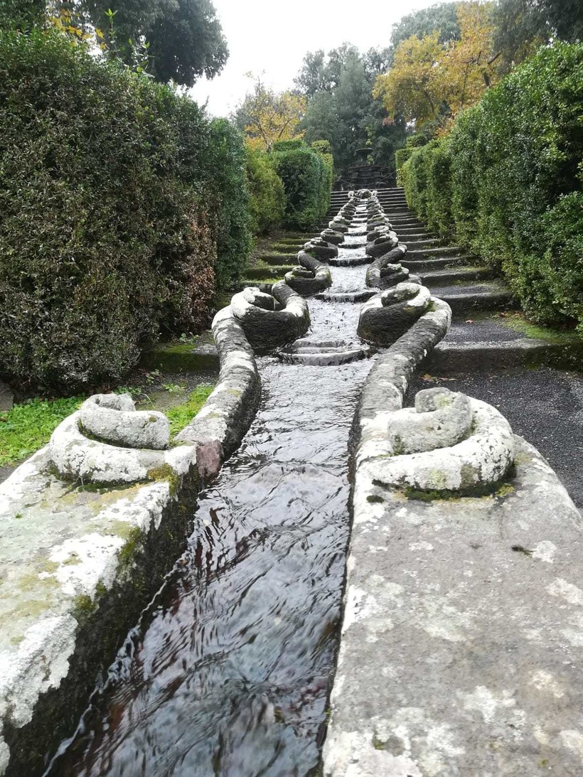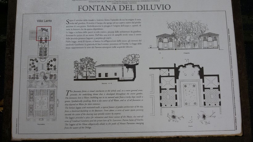 Даже какая-то растерянность была: с чего начать осмотр? Мы начали с нижней части парка. Но, как я потом узнала, рекомендуют сначала подняться на самую верхнюю площадку, к верхнему фонтану, и, спускаясь, рассматривать фонтаны следующего уровня. На каждом уровне – свой фонтан, все они расположены на одной оси. Вернее, это все части одного большого каскада фонтанов. Есть стенды с планами фонтанов и информацией на итальянском и английском языках.