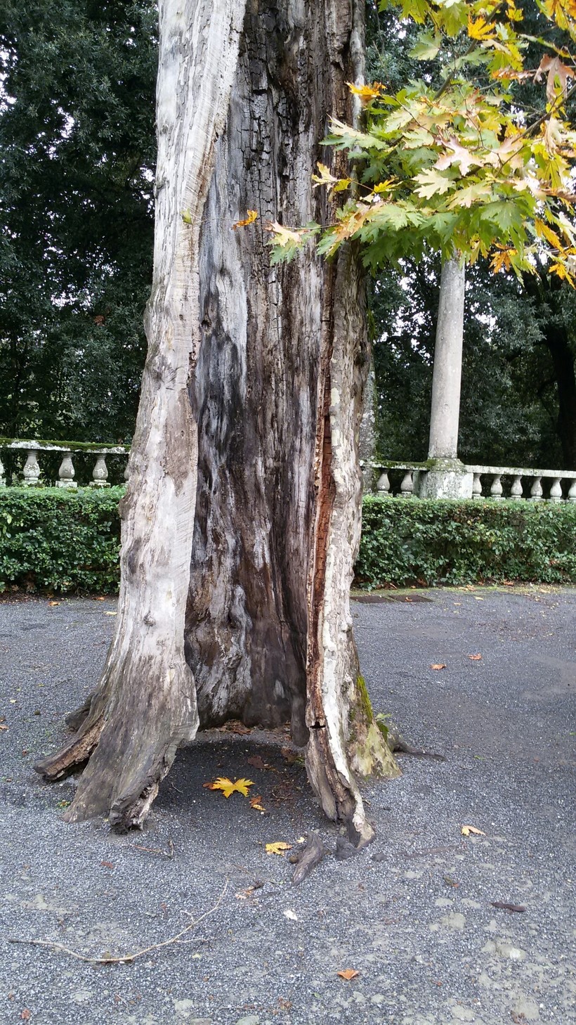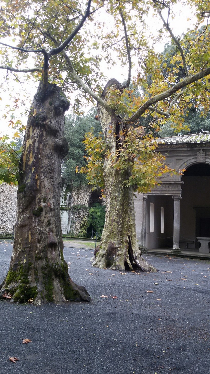 На этой верхней площадке меня поразили старые деревья, платаны. Ветхие, но такие стойкие. От некоторых только кора осталась, но они как-то держатся, что называется, на добром слове.