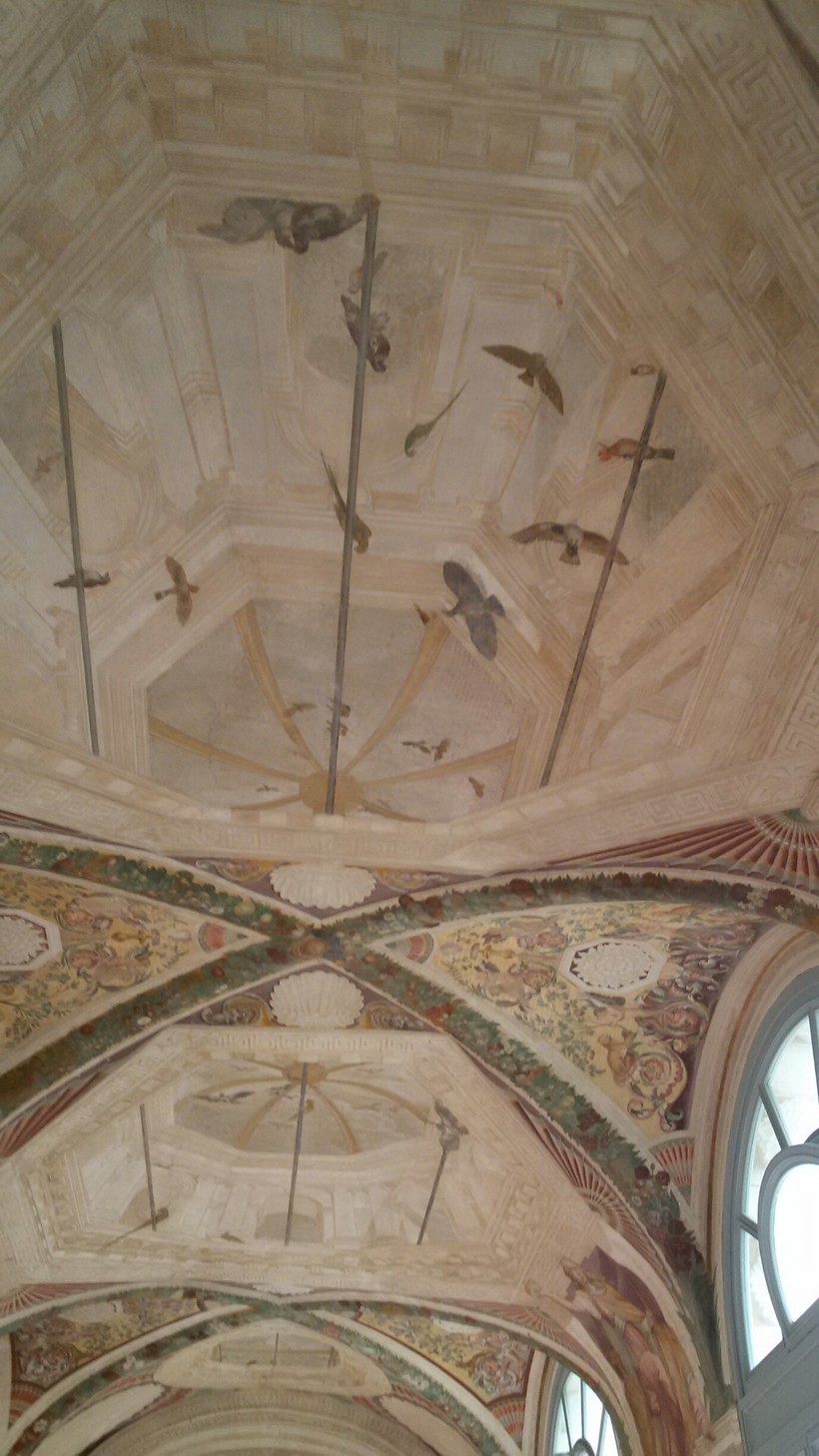 Спустившись, вы попадаете на нижнюю площадку с большим квадратным бассейном, о котором я уже рассказала. Да, еще советую посетить террасы обоих дворцов, стены и потолок в них расписаны очень красивыми фресками.