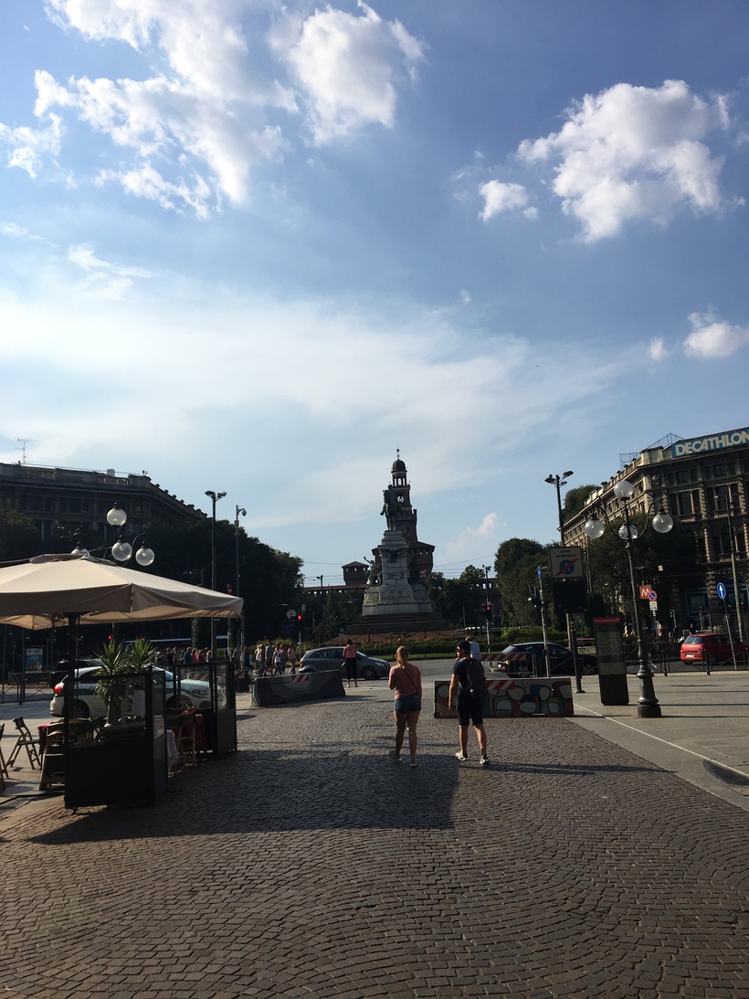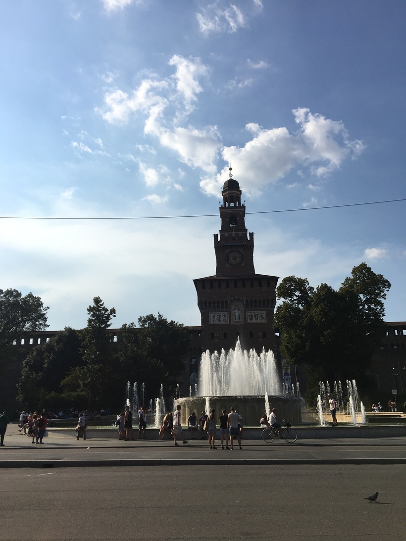 Я приехала в Милан всего на сутки и конечно мне хотелось увидеть как можно больше центральную часть города. Мой отель находился рядом с площадью Дуомо и первое, что я увидела в Милане был Миланский собор Дуомо. Прогулявшись около часа по городу вокруг собора, я решила посмотреть замок Сфорца.