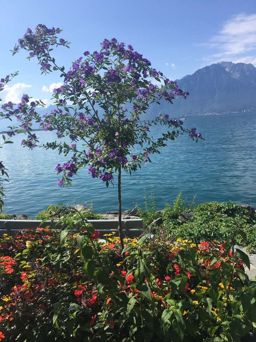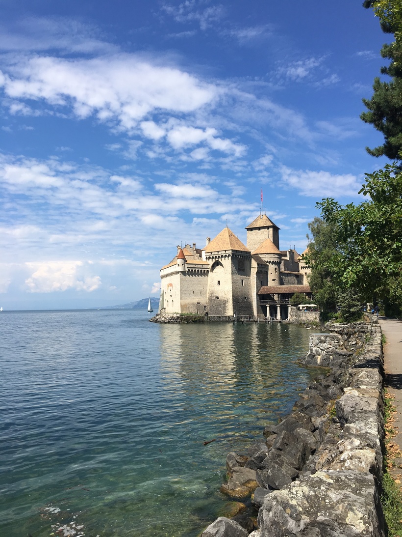 Как было прекрасно поехать в Швейцарию. Это очень красивая страна с величественной природой, бирюзовыми озёрами, зелёными горами. Монтрё очень красивый город на берегу Женевского озера. Протяжённая набережная вся в цветах. Здесь же расположена пристань от которой ходят корабли по Женевскому озеру. На берегу Женевского озера, недалёко от Монтрё находится пожалуй самый известный замок Швейцарии - Шильонский замок.
