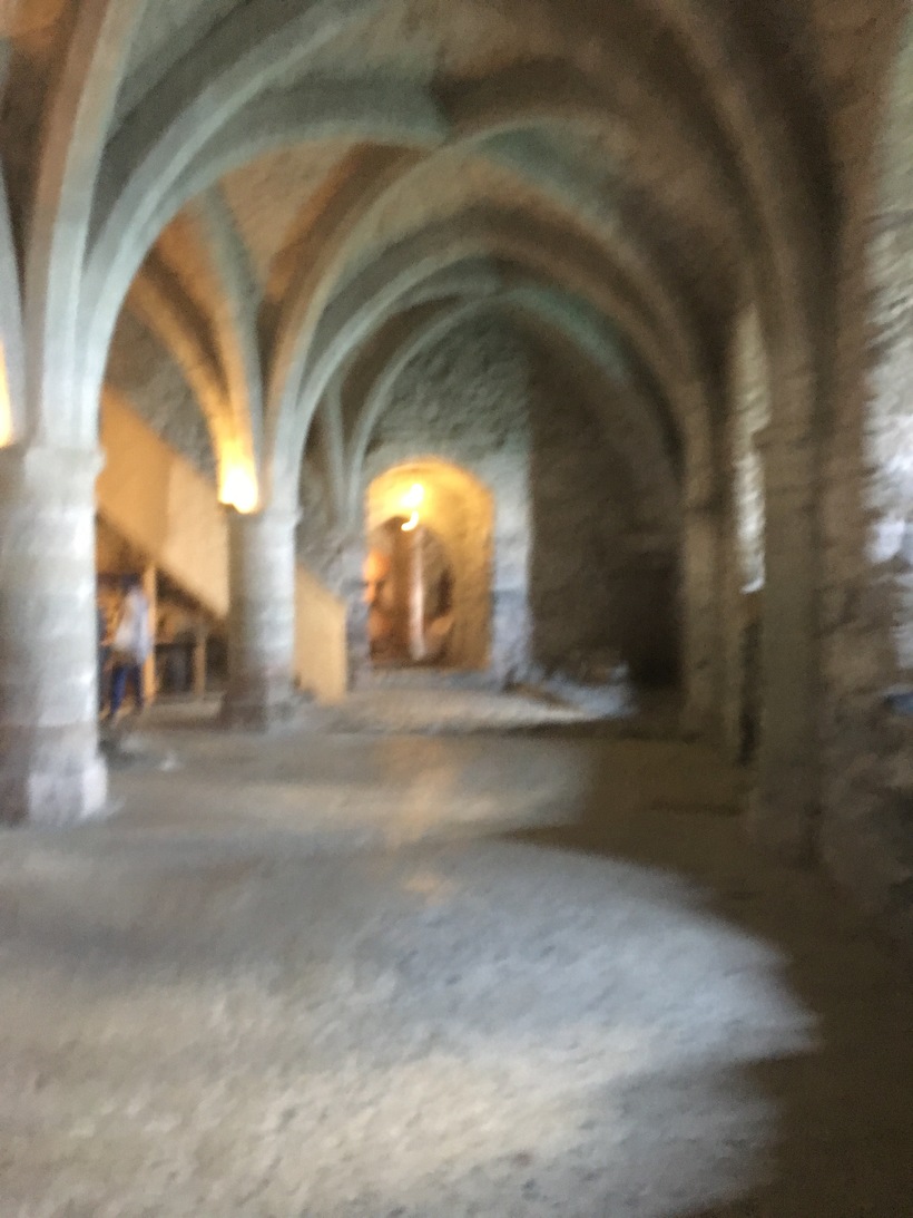 Просто громадная зона, вначале входишь в небольшое помещение, там по стенам бродят приведения, очень необычно, проходит монах, дама в старинном платье, сразу настаиваешься на дух другого времени. Во втором зале огромные бочки с вином вдоль стен, а потом дальше своды расширяются и возникают огромные залы.