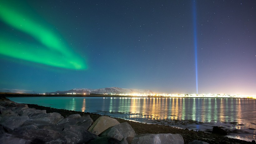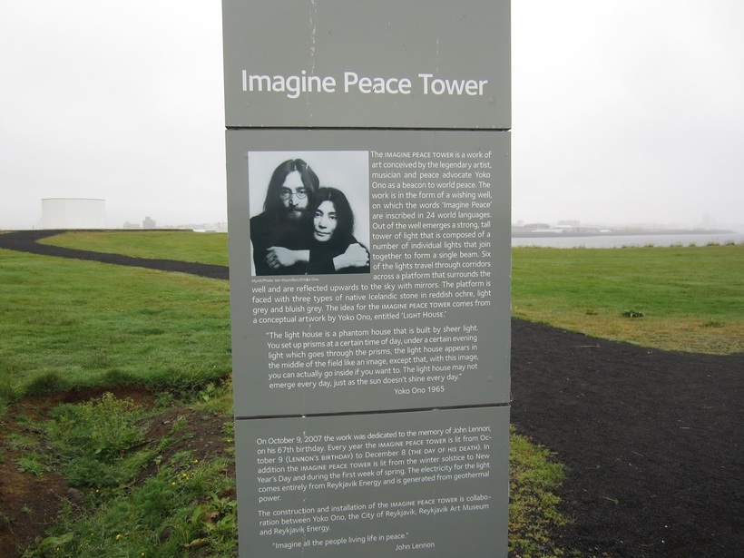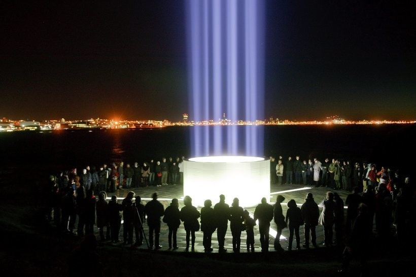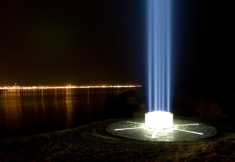 Совершенно неожиданно, находясь в Исландии, в Рейкьявике, близ города обнаружила весьма странное сооружение. Ну как обнаружила - ночью увидела столб света, устремленный в небо, поинтересовалась, что это такое, на что получила ответ, который меня удивил: это памятник Джону Леннону. От такого ответа я была в полном восторге: отлично, здесь, в Исландии, наткнуться на памятник Леннону. Хотя, чему я удивляюсь: памятник битлам на Урале, стена Джона Леннона в Чехии. А тут - Исландия. Наверное, стоило бы удивиться, если бы здесь я ничего подобного не обнаружила бы. Конечно, я не имею ни малейшего понятия, был ли как-то связан Джон Леннон, или его жена Йоко Оно, которая и была, как выяснилось инициатором воздвижения сей инсталляции, с Исландией, но на памятник отправилась посмотреть с огромным любопытством.