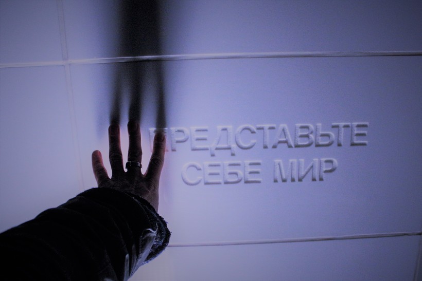 На нем на множестве языков выгравирована надпись "Представьте себе мир". Это строчка из знаменитой песни Леннона "Imagine" об утопическом прекрасном мире, где все равны и нет ничего плохого.