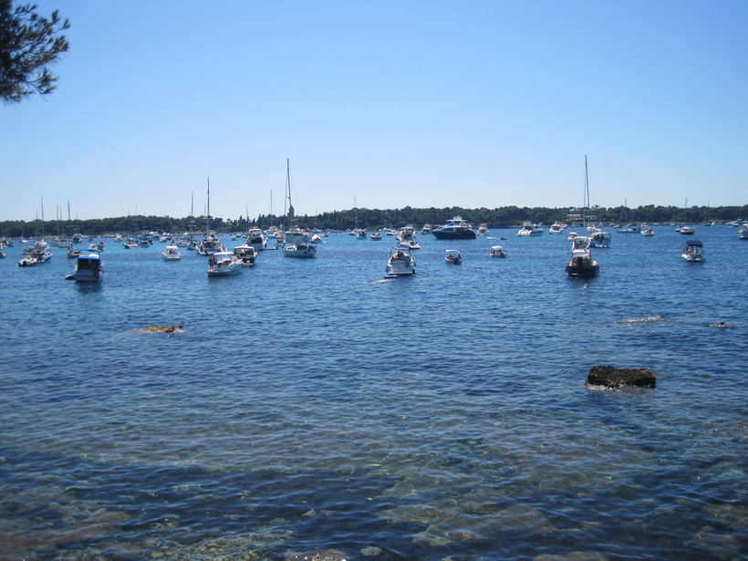 На противоположном от пристани конце острова, был огромный пляж. Вот оказывается, где все туристы. Вид отсюда был чудесный, на соседний остров. Количество яхт и корабликов на этом небольшом участке моря, просто зашкаливало.