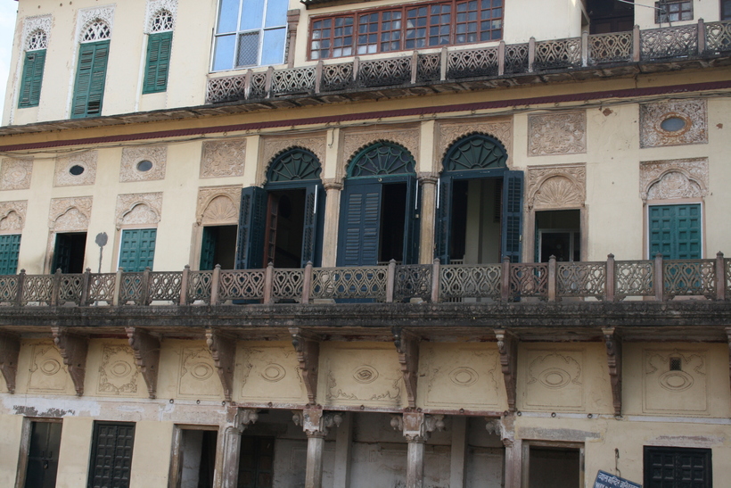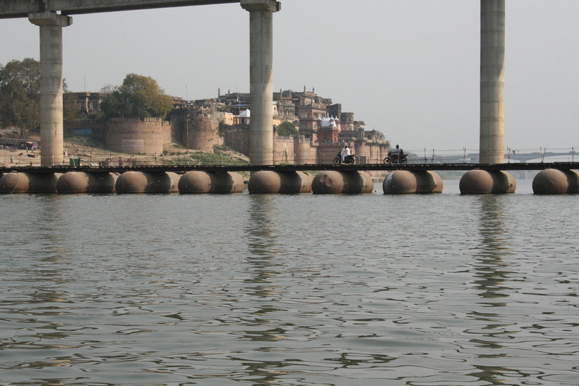 Я жила в Варанаси недалеко от главного гхата Дасашвамедх и мы с друзьями отправились на лодке- обычно для неспешных прогулок по реке я отдаю предпочтение весельной лодке чтобы насладиться медитативными сказочными картинками словно из прошлого. Но не сейчас. Сейчас нам нужно побыстрее переправиться на противоположный берег, к тому же нужно прилично плыть в сторону за Асси гхат от Дасашвамеда- ближе к понтонному мосту- форт Рамнагар находится именно там. Поэтому поплыли мы на моторной лодке, которая пыхтела и издавала недовольные звуки- зато быстро. Мы подплыли к противоположному берегу и оставили лодку с лодочником ждать нас (договаривались друзья). Идти надо сперва по песку как по дюнам, а потом мы вышли на дорогу- там был какой-то стихийный рыночек и продавали свежую рыбу прямо около берега. Потом пошли дома, правда район очень старый и обветшалый, впрочем, как почти и все в Варанаси и окрестностях- меня это не смущает, мне нравятся разные облики старой Индии- и разноцветные витражи дворцов и просто обветшалые старинные ставни, зато тут я чувствую настоящую нерафинированную Индию с ее неповторимым духом- не на все есть деньги отреставрировать, хотя бы не рушат то, что осталось.