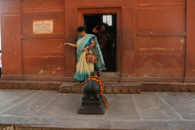 Архитектура форта очень красивая, это больше похоже на дворец с резными балкончиками. Он построен в 17 веке как резиденция правителей области Банарас. На территории форта есть свой собственный индуистский храм Вьясы, который функционирует- перед входом в него стоит изваяние быка Нанди, ездового животного Шивы, индийцы на него вешают гирлянды из чернобривцев в знак почтения.
