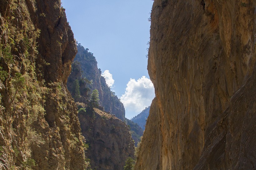Там красиво. Очень красиво. Стены то смыкаются над головой, то расходятся в стороны, открывая изумительной красоты пейзажи. Бродят козы кри-кри, которых нужно кормить умеренно и только листиками, чтобы не лопнули. Текут прозрачные ручьи, на камни ложатся абсолютно синие тени. В лесу пахнет хвоей, местные сосны – уникальны. Вода из ущелья питает чуть ли не всё южное побережье острова. Она чистая, вкусная, поэтому в ней нельзя полоскать ноги, можно только аккуратно попить.
