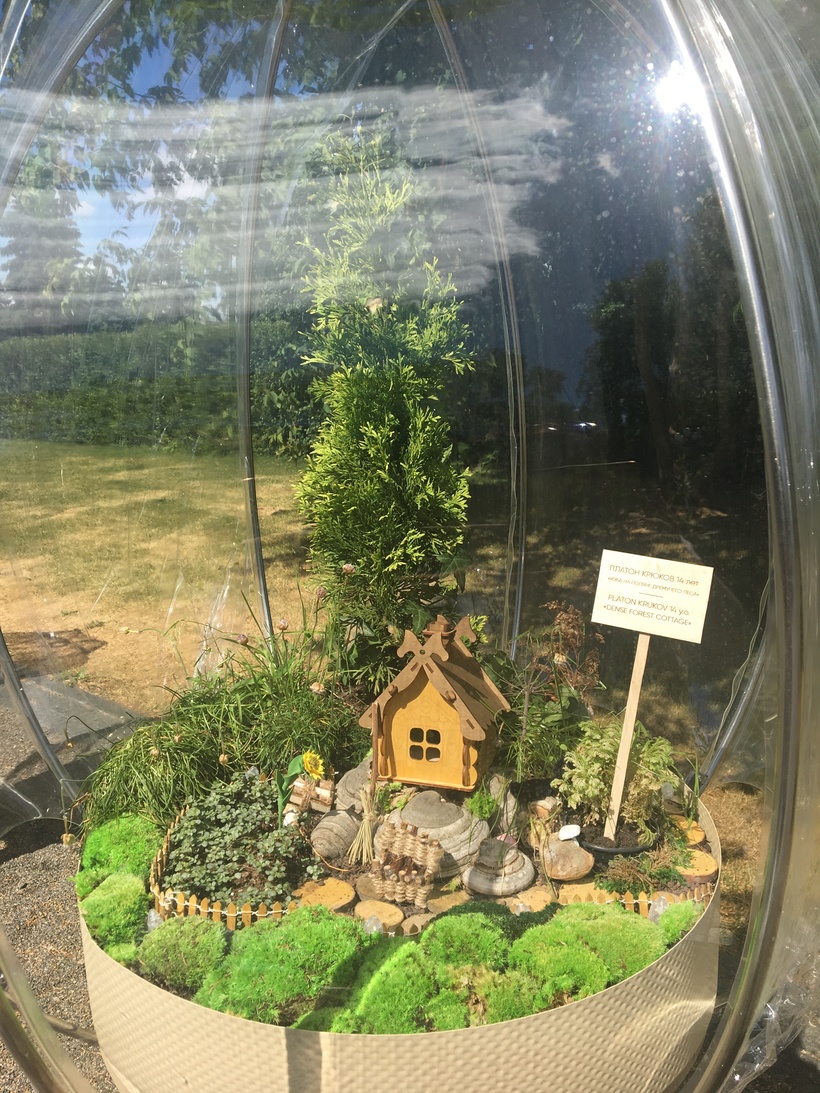 Выставка была такая разлоплановая, что глаза разбегались. Приходилось несколько раз проходить по одним и тем же местам, настолько был интересен каждый кусочек. На аллее посреди парка были установлены стеклянные шары с детскими природными композициями, такие интересные работы, мне очень понравились.