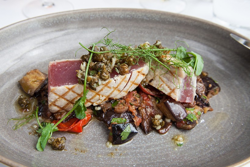 Мы решили, что наш первый завтрак в Новой Зеландии достоин того, чтоб за него слегка переплатить. И выбрались ресторан с прекрасным видом, сели, собственно, на террасе и начали заказывать. Подруга себе взяла бараньи ребрышки, а я решила, что вот он – шанс попробовать очень вкусного тунца.