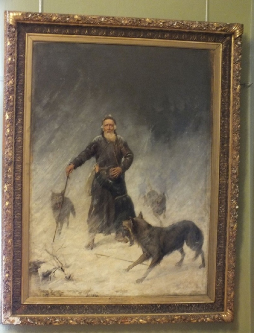 - Посетить музейную экспозицию. А она там очень разная: от старинных деревянных скульптур на религиозную тему до бивней мамонта и прочих экспонатов, характерных для почти любого краеведческого музея. Есть там и картины. Мне, в частности, очень запала работа Пауля Венига «Дедушка, спаси!» — редкий пример русского хоррора в живописи.