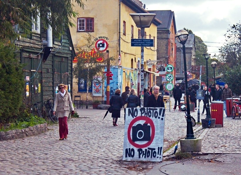 И мне даже удалось побывать на самой известной улице свободного квартала - Пушер-Стрит. Именно здесь ведется свободная продажа легких наркотиков. Конечно, поначалу мне было страшно, но оказалось, что датчане даже этот вид деятельности ведут с присущим им прагматизмом и спокойствием. Здесь нет преступных группировок или банд, поэтому бояться было нечего. Но снимать на этой улице категорически нельзя. Многочисленные таблички возвещают об этом.