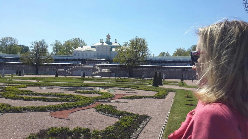 Несмотря на начало июня и солнце, было очень прохладно, даже в плаще. А еще же рядом Финский. Поэтому термос с чаем, взятый с собой, очень пригодился. Да и цены внутри парка на туже самую обычную воду приличные. Туристов в тот день было не много, ощущали себя, как будто прогуливались по своей собственной царской резиденции.