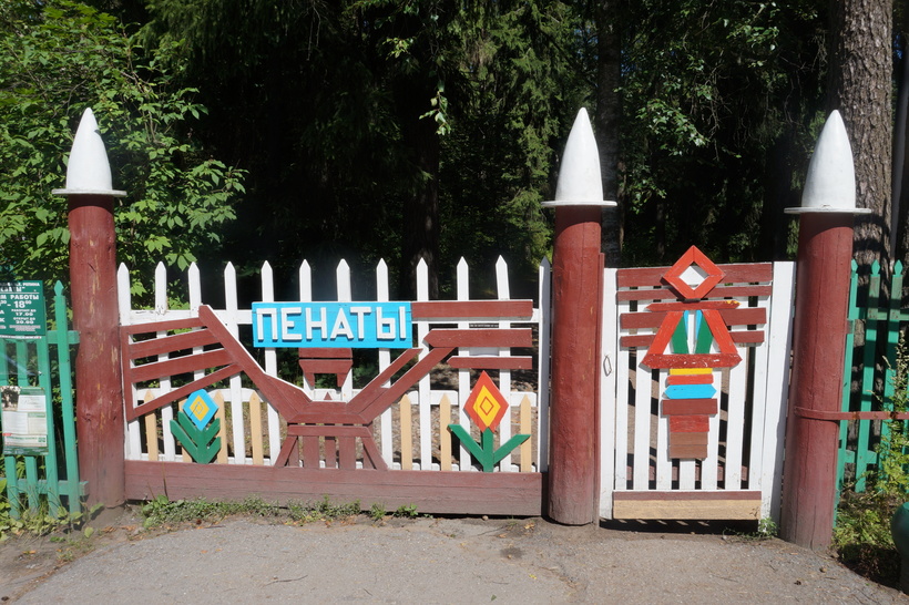 Главное место в усадьбе занимает интересный по своему архитектурному решению двухэтажный деревянный дом с шатрами, флюгерами, резными элементами. Поэтому я совершенно не удивилась, когда узнала, что в создании проекта принимал участие сам художник. Не менее занимательной мне показалась облагороженная территория усадебного парка, в котором устроены пруды, проложены тропинки и установлены беседки. Долгое время я не знала о том, что усадьба являлась не только местом проживания художника, но и стала его вечным пристанищем. Ведь именно здесь художник и был похоронен.
