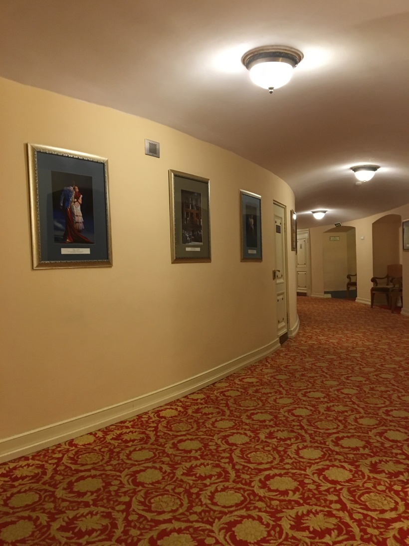 Поэтому я спокойно посмотрела прекрасный театр, обойдя фойе и буфет, коридоры с выставленным старым реквизитом. Посмотрела фотографии прошлых спектаклей на стенах. Также было много фотографий актеров, которые играют в театре.