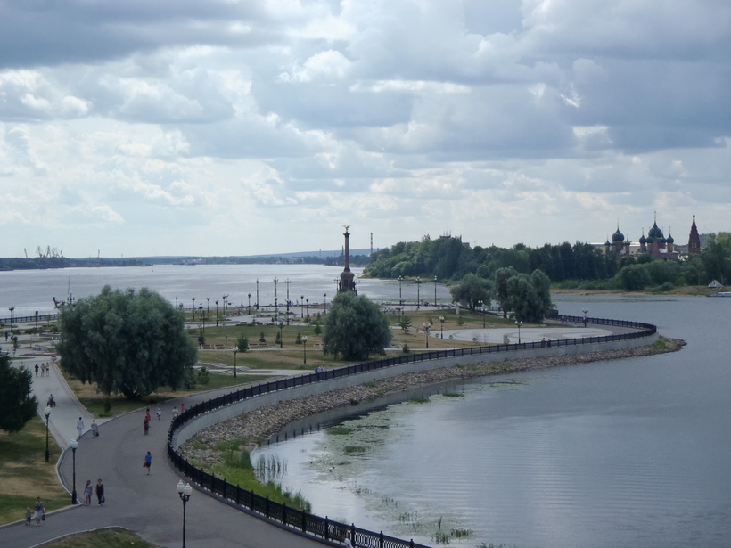 Сама Стрелка сейчас – это такая площадка, которая украшена очень красивыми клумбами и фонтанами. Их включают весной, когда выключают – не знаю, но посмотреть на них однозначно стоит. Ради одних фонтанов в Ярославль не нужно ехать, конечно, просто это место, такое, как оно есть сейчас, очень тесно связано с историей города, с его духом. Вот не зря там было древнее святилище. Мне кажется, в этих местах сохраняется специальное настроение – причем совершенно естественным образом. Смотришь, как танцуют струны фонтанов, и в их переливах возникают призрачные фигуры... а потом думаешь: да нет, это только показалось! Но холодок по спине пробегает.