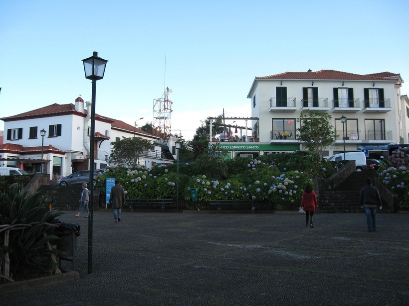 Прогуливаясь по "нетуристической" Сантане, мы зашли в местную небольшую церквушку. Посмотрели на то, как сюда пришли новые технологии – свечи электрические, чтобы они загорелись, надо бросить монетку. Внутри очень празднично, благодаря цветам и, конечно, традиционной португальской плитке в стиле азулежу.