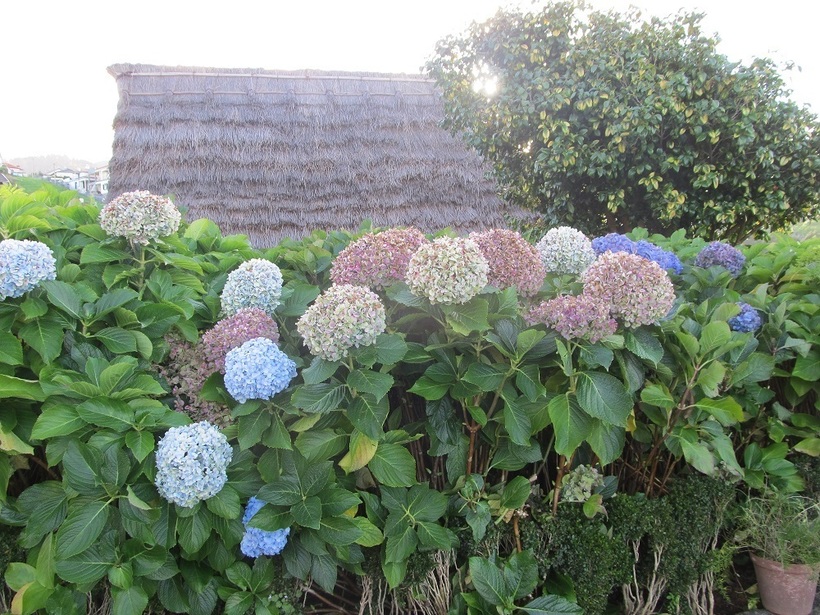 Находясь рядом с этими домиками, хотелось присесть и любоваться ими на фоне удивительной природой Мадейры. Она просто невероятная, сумасшедшая. Шикарная гортензия вдоль дороги.