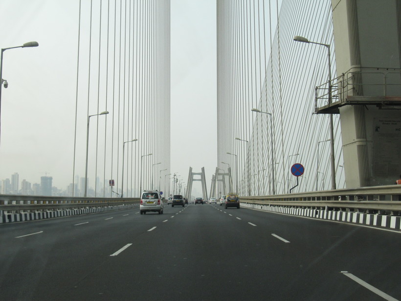 Ехала я на такси и направлялась в центр города на осмотр исторической части. Жила я у друзей в Мумбаи, а их квартира находится в современном спальном районе, что очень далеко от британского центра города (Колаба). В общем вся поездка на такси у меня получилась очень длительной по времени, но зато я имела шанс своими глазами посмотреть мост Бандра-Ворли и проехаться по нему! Тоже интересный опыт увидеть фишки города :-), ведь вроде специально ради моста не поедешь...