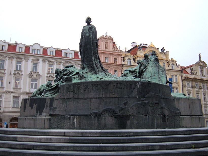 - Памятник Яну Гусу. Огромный и позеленевший от времени, он смотрится очень атмосферно, как и многое в Праге.