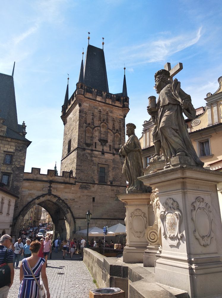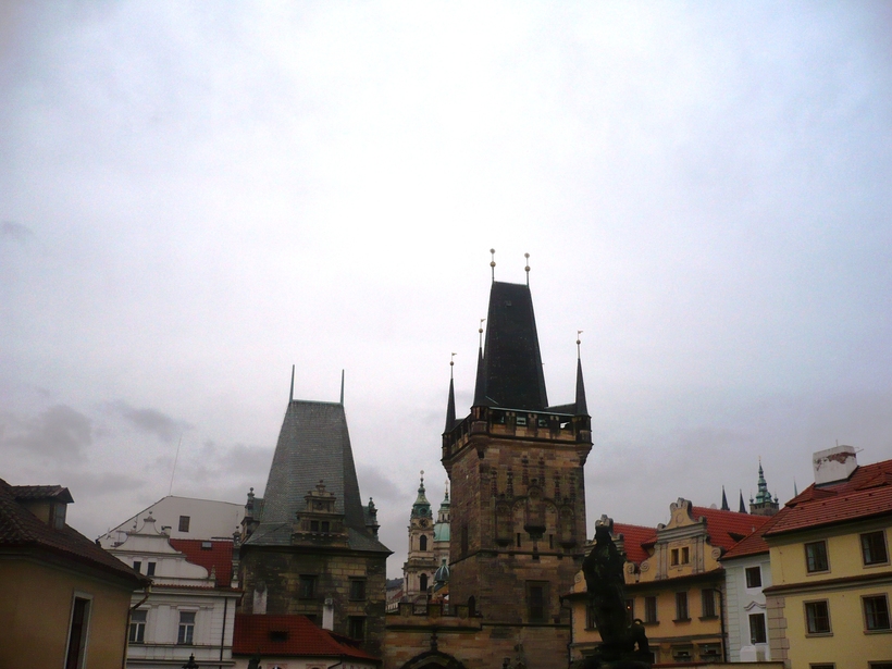 Построенные чуть позже, но все еще в эпоху средневековья, башни с традиционными для Чехии трапециевидными крышами со шпилями фланкируют мост по двум берегам Влтавы. Свои названия башни получили согласно своему местоположению: та, что на левом берегу Влтавы, зовется – Малостранской, а другая соответственно – Староместской. В последней расположена смотровая площадка, с которой открываются изумительные виды на черепичную Прагу.
