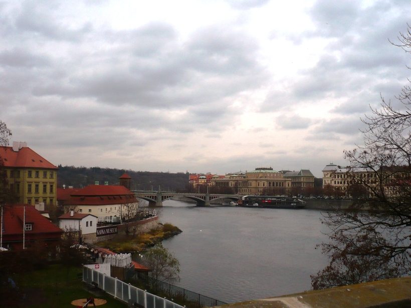 И еще. Буквально в 5 минут ходьбы от завершения моста со стороны Малой Страны находится сцена, там как раз проходил какой-то фестиваль. Так что я устроилась поудобнее и примерно с таким видом наблюдала за выступлениями симпатично-красиво-подкаченных молодых людей в форме годов так 50-ых, попутно пополняя свой обезвоженный после прогулки по мосту организм самыми разнообразными вкусными жидкостями. :)