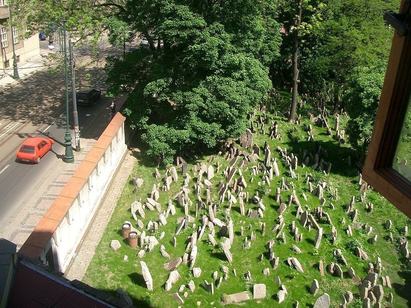 Старое еврейское кладбище — это небольшой участок, расположенный на возвышении относительно улицы, на которую он выходит. Добирался я туда пешком из района Мала Страна: сначала по Карлову мосту до Староместской площади, а затем — уже в еврейский квартал.
