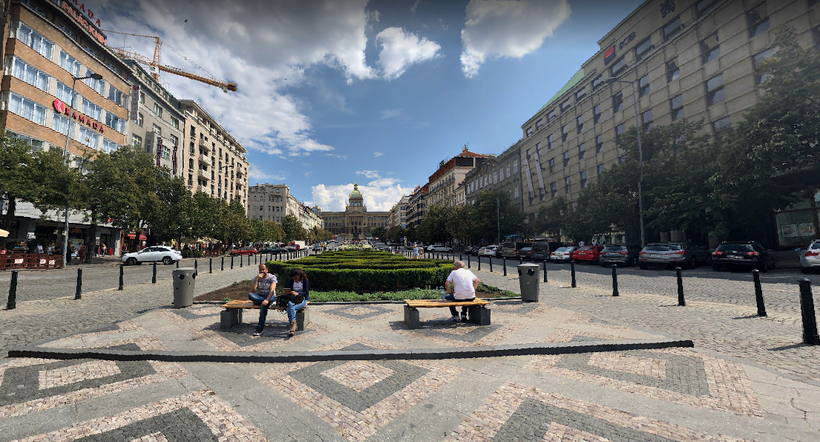 Начну с того, что Вацлавская площадь больше похожа на небольшую улицу длиной порядка 750 метров. Она узкая, вытянутая и с двусторонним движением.